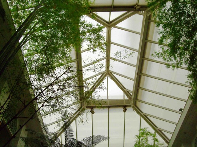 中庭屋頂採透光的玻璃設計,配合ㄧ堆花草樹木,感覺超棒的!!