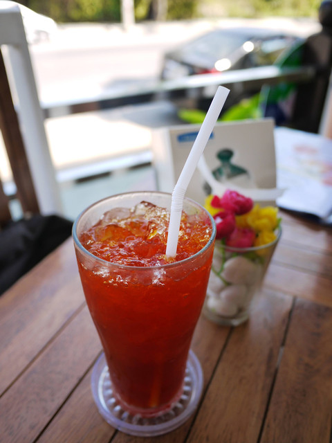 飲料點了一杯泰式紅茶跟一杯檸檬紅茶,泰國的檸檬紅茶很喜歡調的非常酸,稱不上喜歡或不喜歡,不過那股酸到腦後的感覺挺過癮就是了。