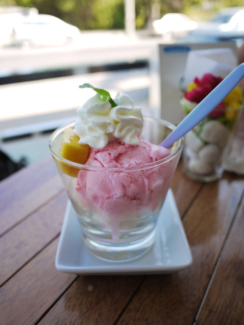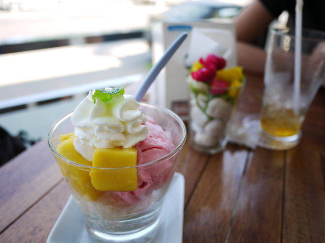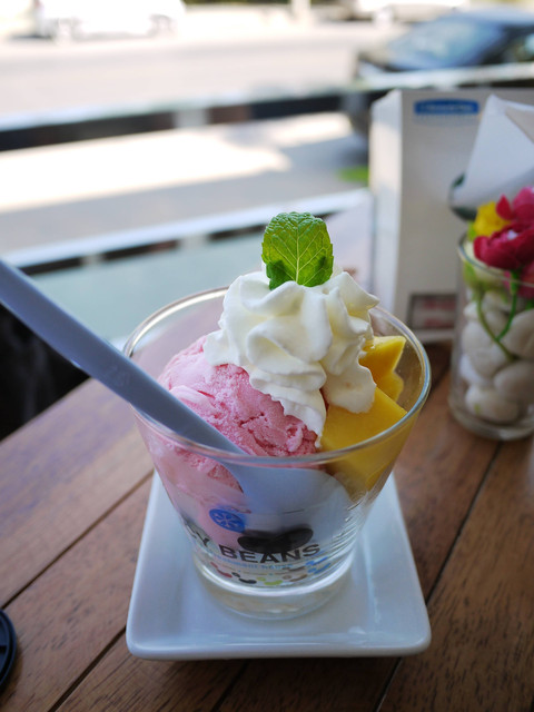 Icy Beans的聖代除了冰淇淋、水果切塊、奶油這幾項基本款外,底下可是藏著甜糯米,可說是泰式風格聖代。