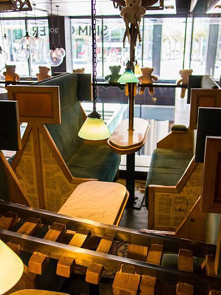 可惜的是雖然設計感十足,不過舒適度不太佳,座位空間滿狹窄,桌面也是小小的,我跟朋友一致認同高壯的外國人應該會坐的很痛苦,這完全是泰國人size