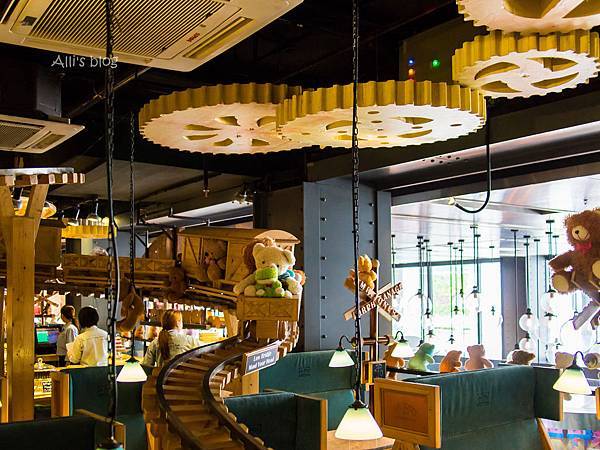siam center的主題風格跟thonglor本店不一樣,主打是童話列車,座位區也都模擬列車車廂設計。