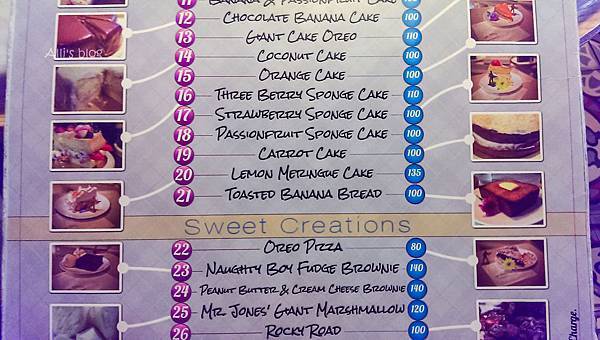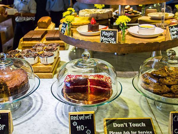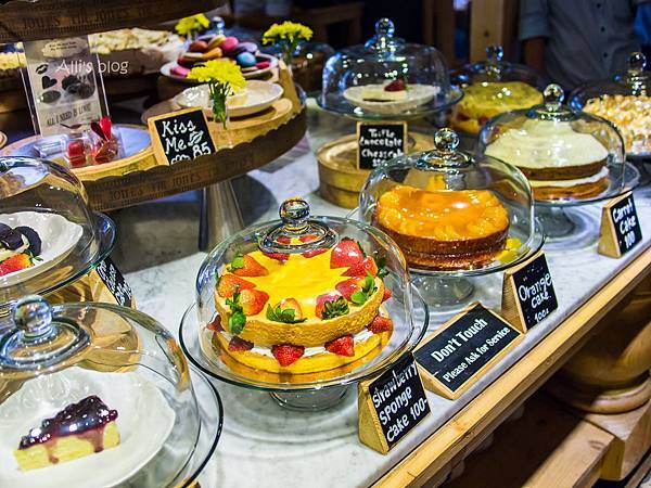 除了蛋糕還有各式甜點,品項很多,蛋糕價位約在100~130左右,其實不貴耶,蛋糕在泰國是一種貴的不知所云的東西,連大賣場或超市那種看起來就不好吃的乾澀海綿蛋糕都可以賣70~80 UP....