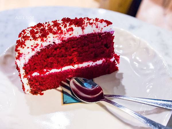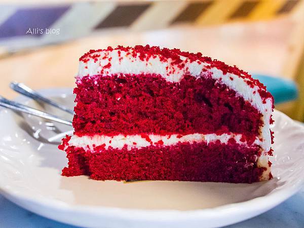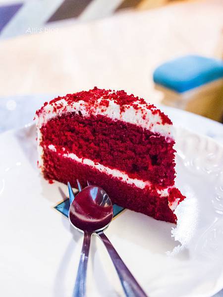 紅絲絨蛋糕,口感綿密細緻,上層慕斯帶點鹹酸(不是壞掉 XD),整體搭配出奇妙口感,好吃!