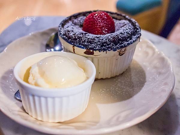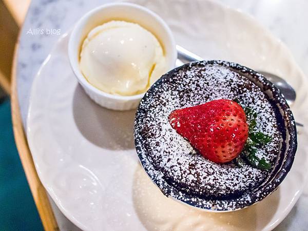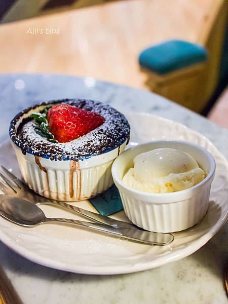 其實這泥巴派也不是啥奇特甜點,說穿了就是類似巧克力熔岩蛋糕,但Mr. Jones的泥巴派不愧是招牌甜點,溫熱溶融狀態的巧克力&巧克力蛋糕,一入口整個巧克力風味香濃到了一個極致,嫌甜膩的話可以搭配清爽香草冰淇淋入口,冷熱交織的口感也是絕佳。