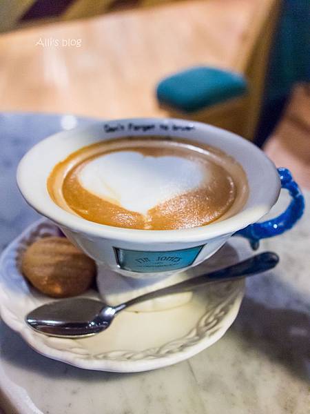 無糖熱拿鐵正是搭配甜點的好物,一人來一杯剛剛好,還附了一片小餅乾。