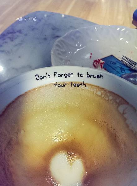 喝完後會看到杯子中還有可愛的小提醒,請你記得刷刷牙~